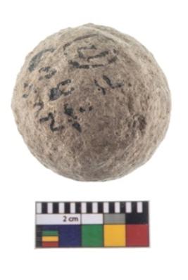 | Description / विवरण | A partially broken speciemen of stone sling ball, small in size, flat base and with smooth surface. |