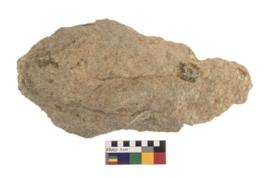 | Description / विवरण | A partially broken roughly triangular shaped worked stone object . With a plain surface on one end . It seems that the shape of this object is mechanical and it contain evidence of retouching . It is made from sandstone . |