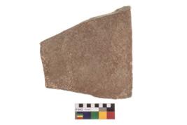 | Description / विवरण | A partially broken specimen of a Used stone block, roughly triangular in shape with plain section. It has sharp edges and polished surface at one side . This object is made from sandstone |