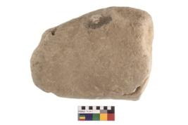 | Description / विवरण | A partially broken of a muller stone which is oval in shape and rectangular in section with a rough surface made from sandstone |