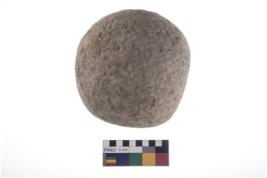 | Description / विवरण | A partially broken specimen of roughly round shaped hammer stone with battered periphery along with the circumference. |
