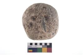 | Description / विवरण | A partially broken specimen of roughly round shaped hammer stone with battered periphery along with the circumference. |
