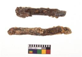 | Description / विवरण | A specimen fragment of nail having pointed functional end, extended horizontally to one side. |