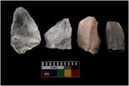 | Description / विवरण | There are n-4 of cores. 2 are made up of Quartz and 2 are of Chert. All of them are intact fully fluted cores without any trace of crested ridge flakes. |