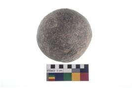| Description / विवरण | A partially broken specimen of roughly round shaped hammer stone with battered periphery along with the circumference. |