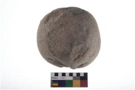 | Description / विवरण | A partially broken specimen of roughly round shaped hammer stone with battered periphery along with the circumference. |