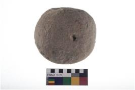 | Description / विवरण | A partially broken specimen of roughly round shaped hammerstone with battered periphery along with the circumference. |