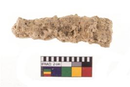 | Description / विवरण | A specimen fragment of nail having pointed functional end, extended horizontally to one side. |