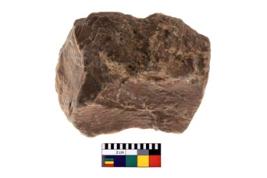 | Description / विवरण | Roughly rectangular shaped core showing few irregular flake scars on the body. |