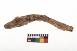 | Description / विवरण | A specimen fragment of nail having pointed functional end, extended horizontally to one side. |