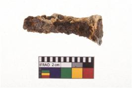 | Description / विवरण | A specimen fragment of nail having pointed functional end, extended horizontally to one side. |