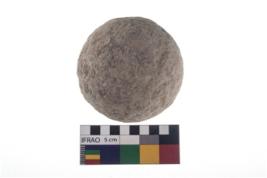 | Description / विवरण | A partially broken specimen of roughly round shaped hammer stone with battered periphery along with the circumference. |