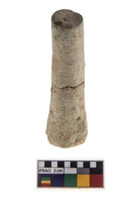 | Description / विवरण | A complete specimen of a stopper with a conical body slightly tapering sides, flat top, a depression at the under surface. |