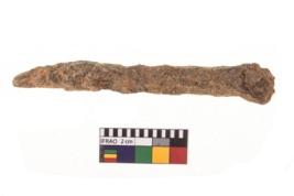 | Description / विवरण | A specimen fragment of nail having pointed functional end, extended horizontally to one side. |