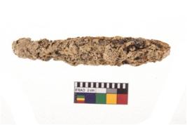 | Description / विवरण | A specimen fragment of nail having pointed functional end, extended horizontally to one side. |