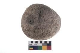 | Description / विवरण | A partially broken specimen of roughly round shaped hammer stone with battered periphery along with the circumference. |