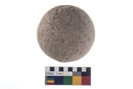 | Description / विवरण | A partially broken specimen of roughly round shaped hammer stone with battered periphery along with the circumference. |