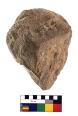| Description / विवरण | The borer is made of sand stone. It has many flaking marks on both surfaces.Tip is pointed with broad butt. |