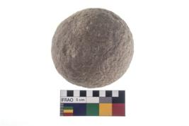 | Description / विवरण | A partially broken specimen of roughly round shaped hammer stone with battered periphery along with the circumference. |