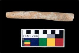 | Description / विवरण | A complete specimen of terracotta kohl stick with a rounded end and smooth surface. |