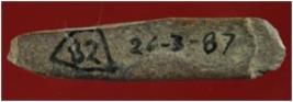 | Description / विवरण | Trench YA 3 Qdt 1,layer 2,depth 60 cms It is a blade made of bone. Surface is rough. Colour is blackish brown. |