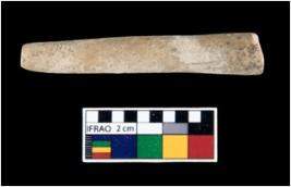 | Description / विवरण | A complete specimen of terracotta kohl stick with a rounded end and smooth surface. |