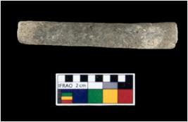 | Description / विवरण | A complete specimen of terracotta kohl stick with a rounded end and smooth surface. |