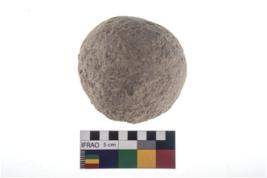 | Description / विवरण | A partially broken specimen of roughly round shaped hammer stone with battered periphery along with the circumference. |
