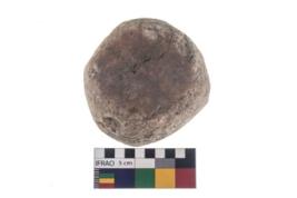 | Description / विवरण | A partially broken specimen of roughly round shaped hammer stone with battered periphery along with the circumference. |