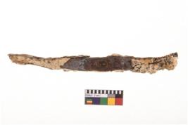 | Description / विवरण | A specimen fragment of nail having pointed functional end, extended horizontally to one side. |
