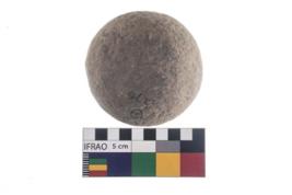 | Description / विवरण | A partially broken specimen of roughly round shaped hammer stone with battered periphery along with the circumference. |