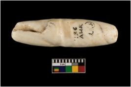 | Description / विवरण | A cylindrical shaped net sinker with a central notch. |