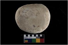 | Description / विवरण | A hammer stone round in shape with one working edge. |
