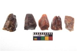 | Description / विवरण | There are n-5 of cores. All are made up of chert. All of them are intact fluted cores without any trace of crested ridge flakes. |