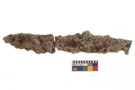 | Description / विवरण | A specimen fragment of nail having pointed functional end, extended horizontally to one side. |