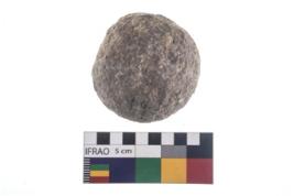 | Description / विवरण | A partially broken specimen of roughly round shaped hammer stone with battered periphery along with the circumference. |
