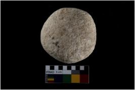 | Description / विवरण | A hammerstone round in shape with one working edge. |