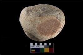 | Description / विवरण | A hammerstone round in shape with one working edge. |
