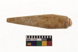 | Description / विवरण | A specimen of point with sharp pointed end on one side. It has bulgy body. Circular in cross section. Polished surface. |