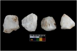 | Description / विवरण | There are n-4 cores. All are made up of quartz. All of them are intact fluted cores without any trace of crested ridge flakes. |