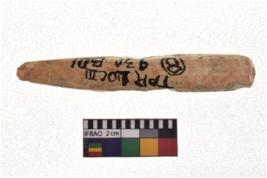| Description / विवरण | A specimen of point with sharp pointed end on one side. It has bulgy body. Circular in cross section. Polished surface. |