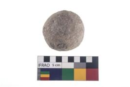 | Description / विवरण | A partially broken specimen of stone sling ball, It is roughly rounded shaped and small in size,with smooth surface. |