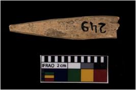 | Description / विवरण | A specimen of point with sharp pointed end on one side. It has bulgy body. Circular in cross section. Polished surface. |