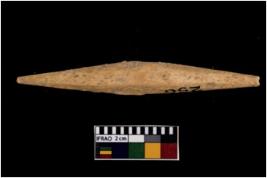 | Description / विवरण | A specimen of point with sharp pointed end on one side. It has bulgy body. Circular in cross section. Polished surface. |