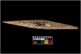 | Description / विवरण | A specimen of point with sharp pointed end on one side. It has bulgy body. Circular in cross section. Polished surface. |