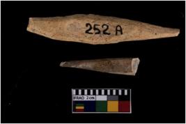 | Description / विवरण | A specimen of point with sharp pointed end on one side. It has bulgy body. Circular in cross section. Polished surface. |