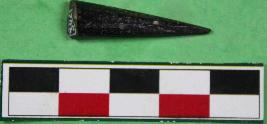 | Description / विवरण | Bicone shaped point with broken end having rough surface. It is black in colour. |