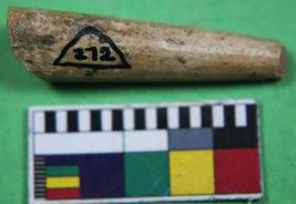 | Description / विवरण | Fragment of a point, broken from both ends having rough surface. |