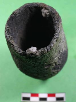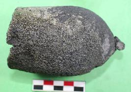 | Description / विवरण | Incrusted crucible having cylindrical shaped with hollow and pointed at the top of crucible. It is black in colour. |