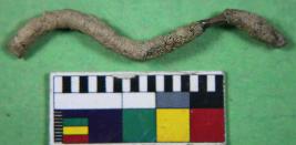 | Description / विवरण | A bent wire having broken ends. It has incrustation layer on its surface and its colour is brown. |